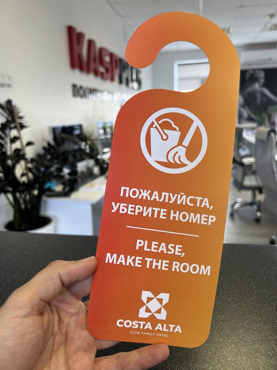 Дверные рекламные хенгеры идеально подходят для гостиниц, жилых комплексов и офисных зданий. В отелях используют таблички “не беспокоить/уберите в номере” с логотипом, акциями для постояльцев. Также хэнгеры отлично подходят для выставок, конференций и собраний.